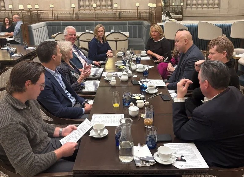 Board Members and supporters of Friends of Young Enterprise Northern Ireland (FYENI) discuss priorities for 2026 over breakfast with Joseph P. Kennedy III, the former Special Envoy to Northern Ireland in the Biden Administration.