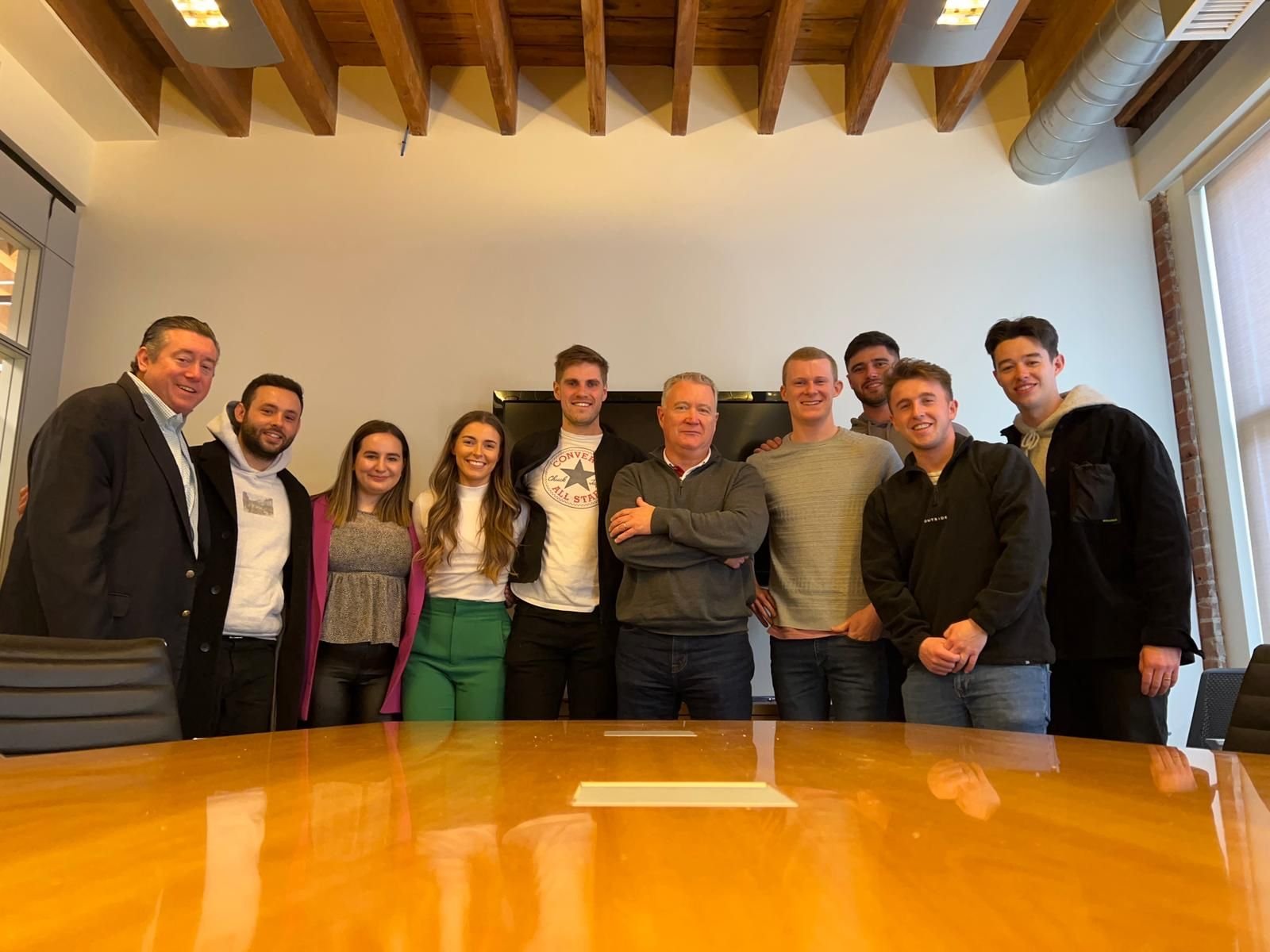 Entrepreneurs from Young Enterprise Northern Ireland met with US/Dublin entrepreneur Ciaran Hynes (center) of Cosimo Digital in Boston in 2022.